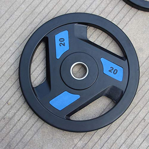 Pair of Olympic rubber weight plates (left and right hands). Made of metal with rubber coating, with 2" holes.